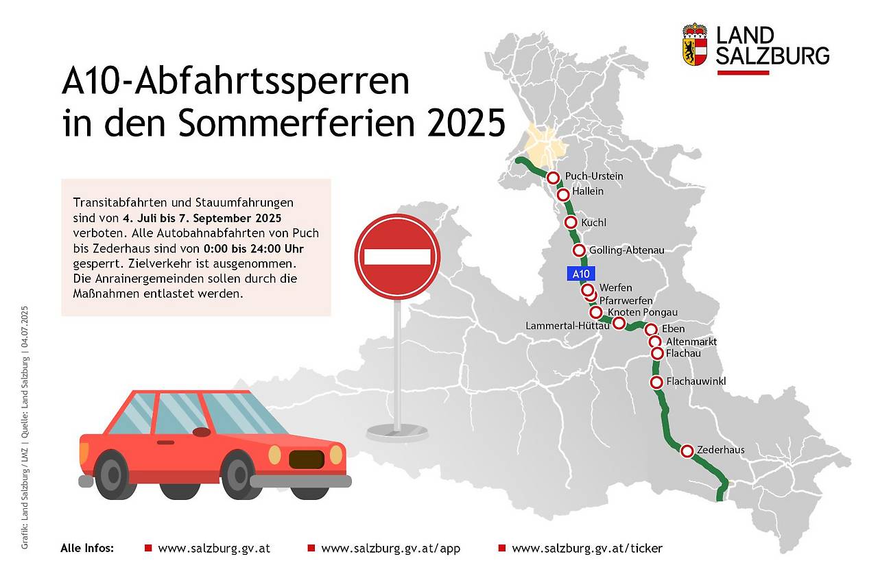 Abfahrtssperren auf der Tauernautobahn Sommer 2025